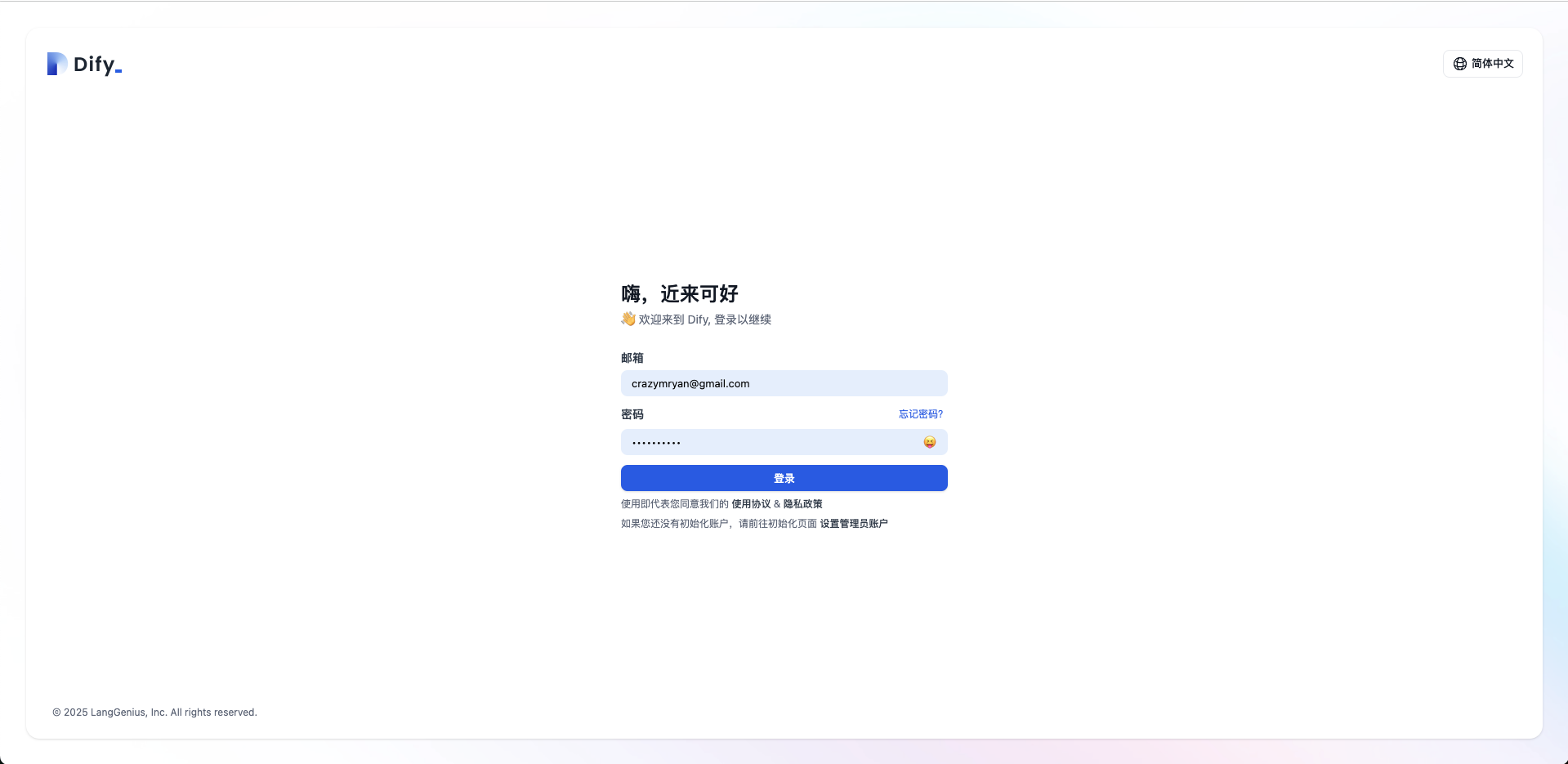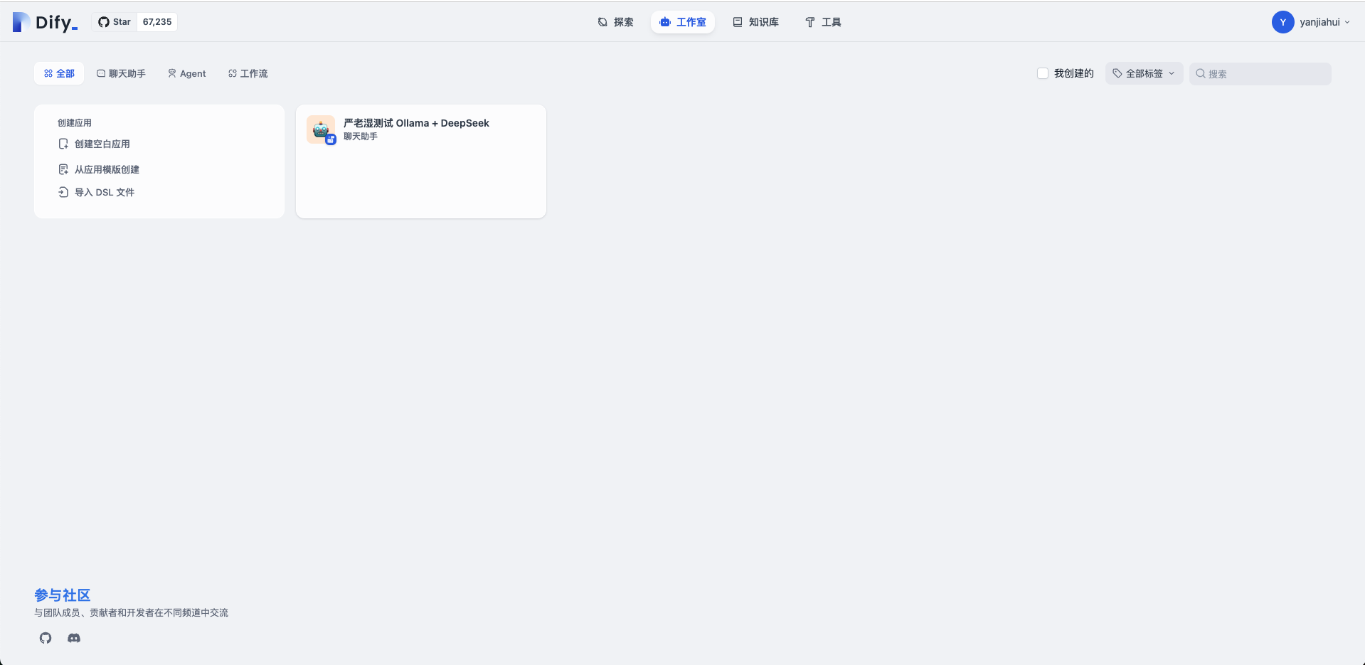 访问http://localhost进入 Dify 工作台,可开始创建 AI 应用或配置大模型。