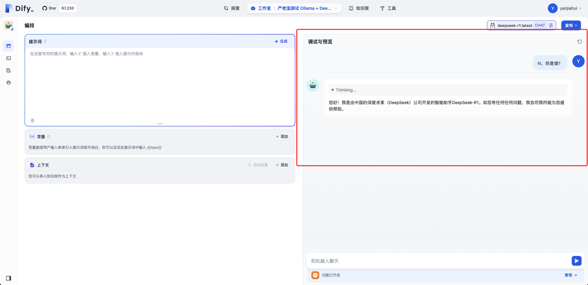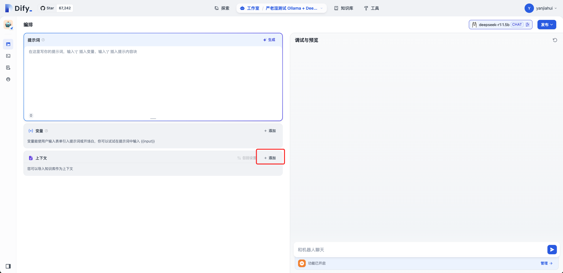 进入到前面创建的应用内,绑定知识库作为上下文,提出文章中所包含相关字眼,然后向它提问。
