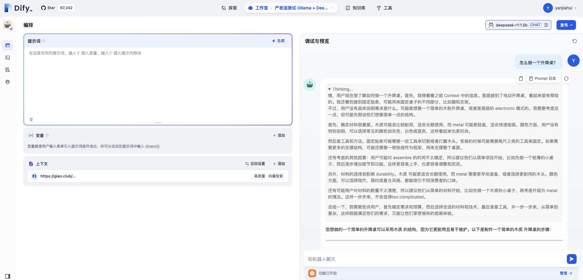 可以看到下面我问它,怎么做一个升降桌,它的内心戏码也比较足。