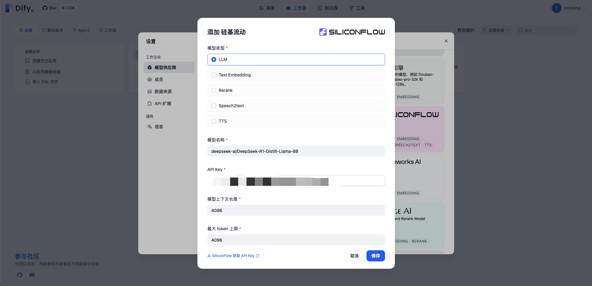 如果你追求极致的性能和高参数模型,你还可以通过 Dify 接入硅基流动的模型(主要是额度又高,还有免费的模型)。