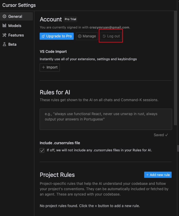 1. 退出 Cursor 账号