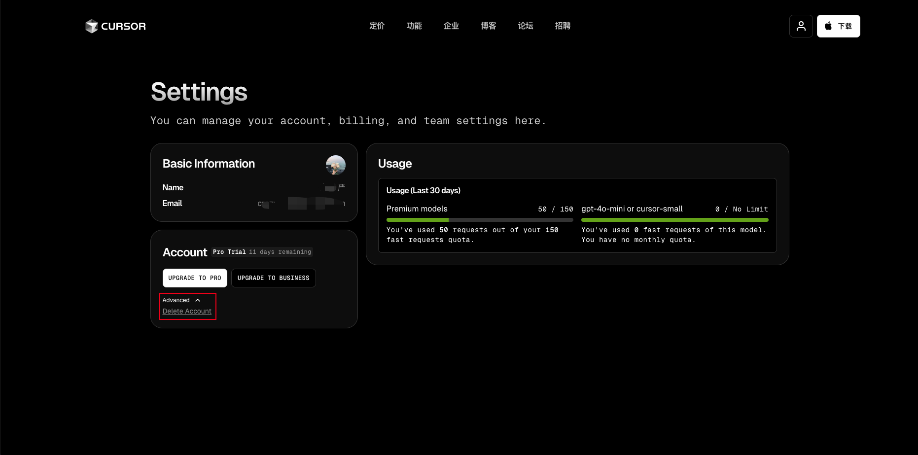 https://www.cursor.com/cn/settings