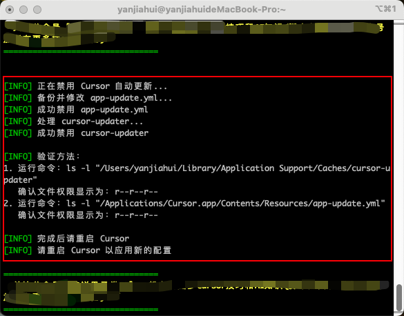 irm https://aizaozao.com/accelerate.php/https://raw.githubusercontent.com/yuaotian/go-cursor-help/refs/heads/master/scripts/run/cursor_win_id_modifier.ps1 | iex回车执行命令后,会让你输入密码,后面将你本地的 Cursor 关闭。这都是正常的,直到,看到下面的提示,即代表已经执行完毕了。