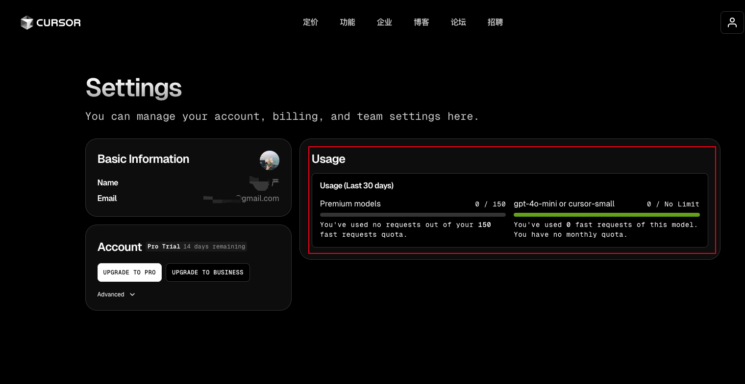 去 Cursor 设置页面,查看是否恢复额度。