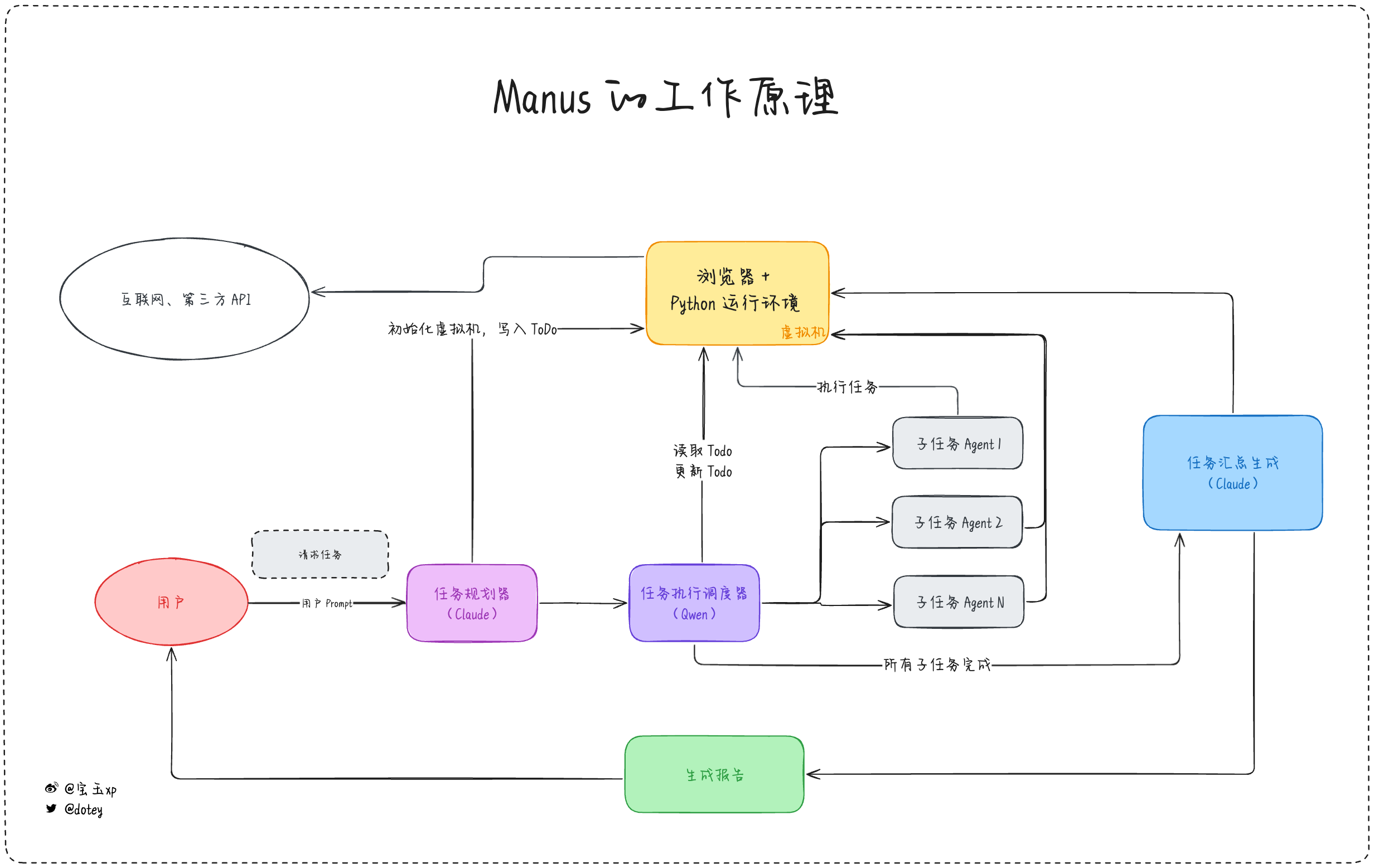 Manus 现在被吹得挺神的,但说白了就是个“拼装车”产品。这东西其实没什么黑科技,就是把市面上现成的AI模型(比如 Claude、OpenAI )打个包,套个好看的界面,再蹭着“智能助理”的热度宣传。