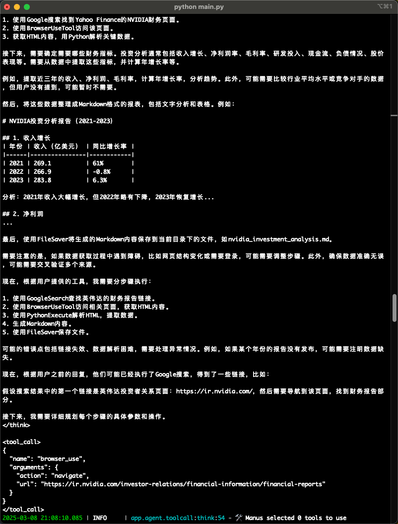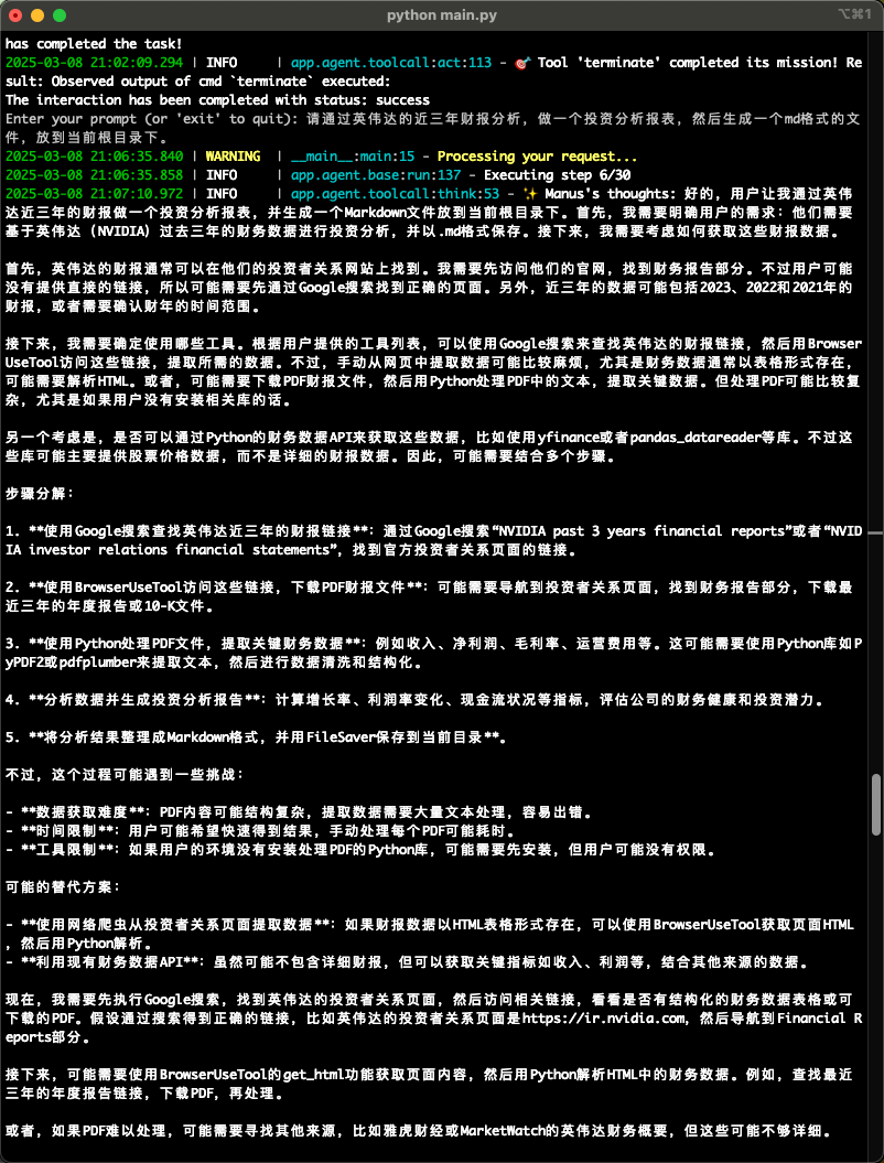 毕竟这个 OpenManus 确实只花了三个小时,就能复刻这些基本的工具链调用。虽然还没那么强大,但是个人感觉这种开源的项目,社区维护起来之后发展还是非常快的,拭目以待吧。