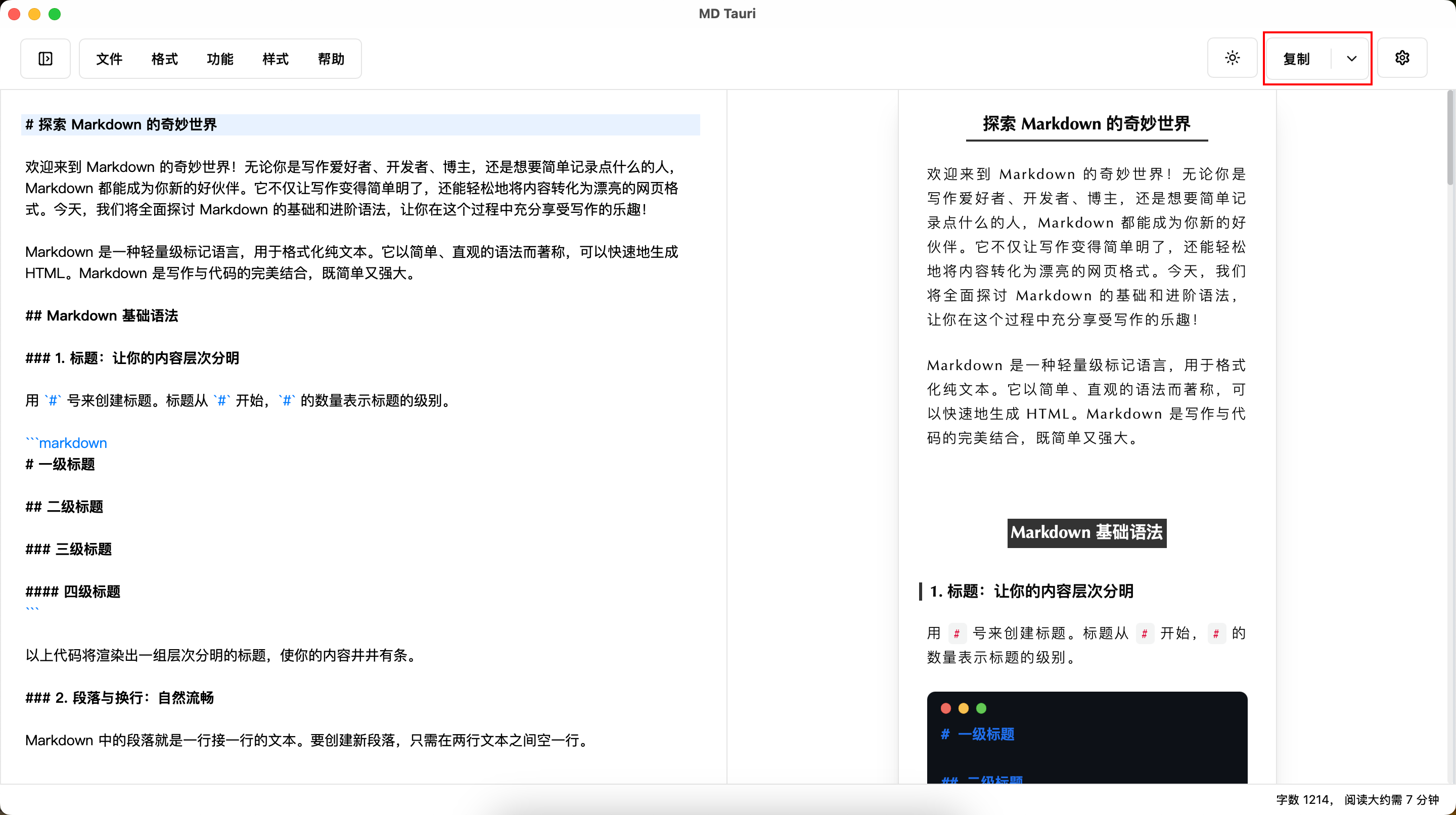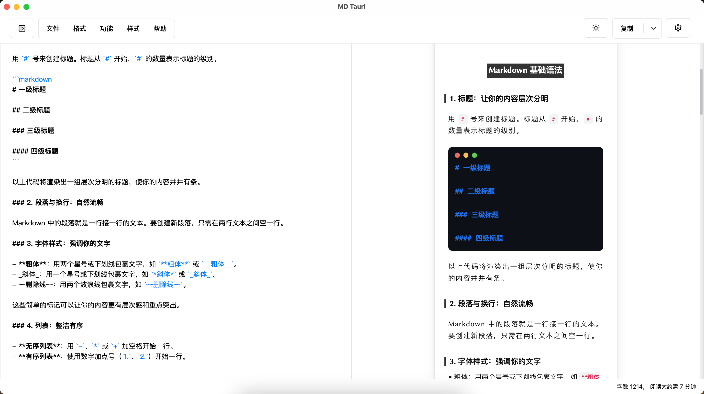 支持 Markdown 所有基础语法例如: