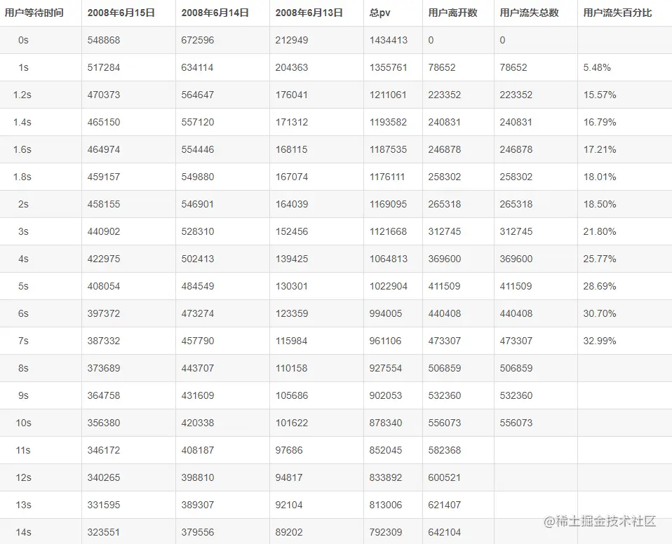 客户等待页面时长的流失率