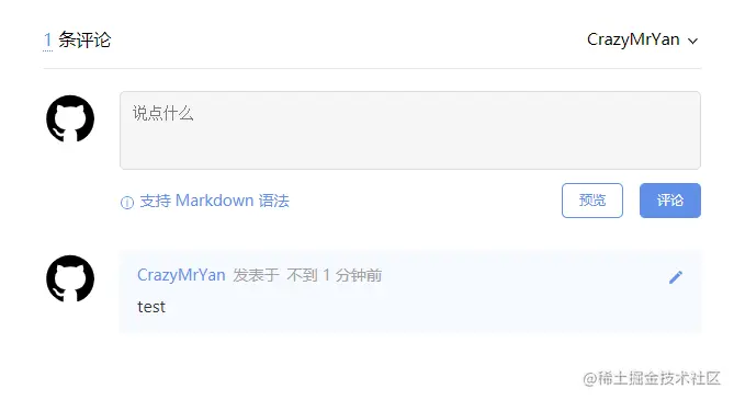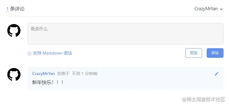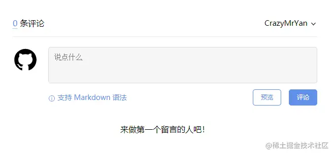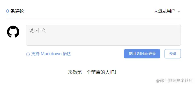 gitalk.render('gitalk-container')看下我们刚刚写完这些之后的效果,大致就长这样了