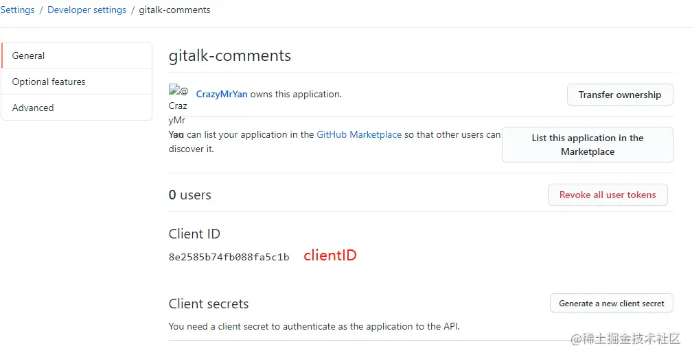 这里面的 clientID 是我们之前配置中需要的 ID