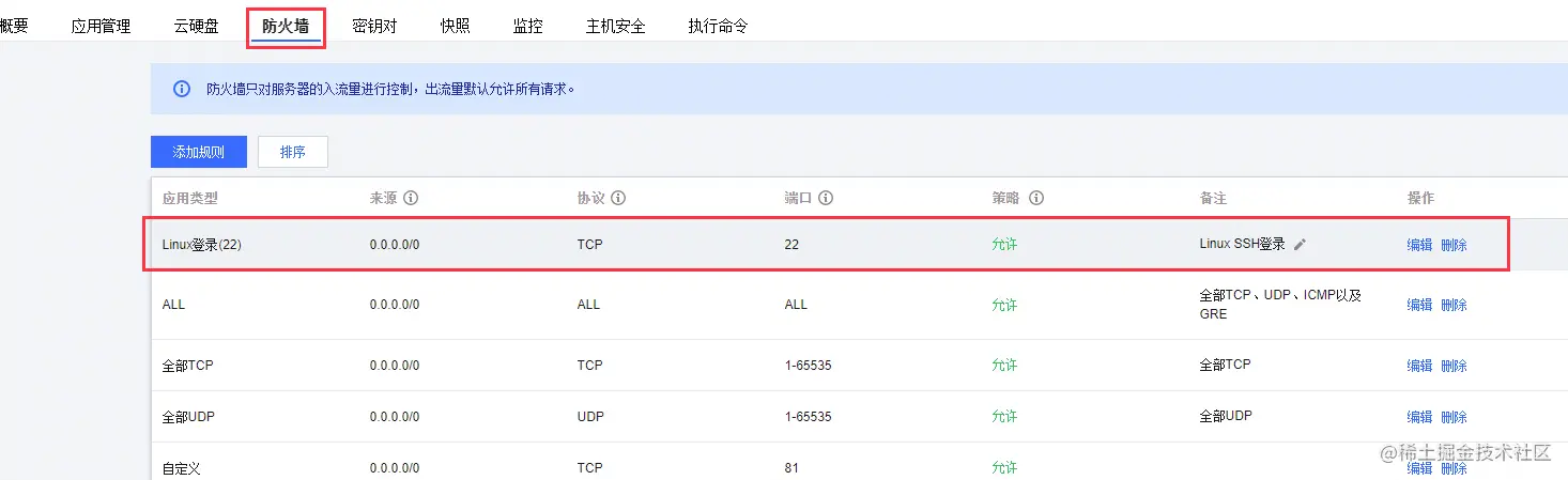 本地先尝试通过 ssh 链接服务器。 默认端口是 22 如有特殊自行修改