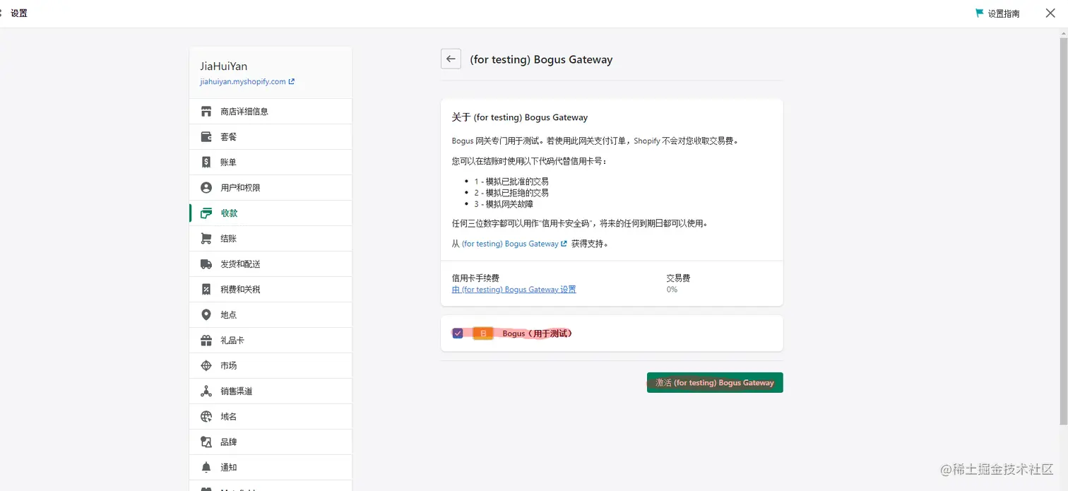 Shopify 模拟测试支付状态