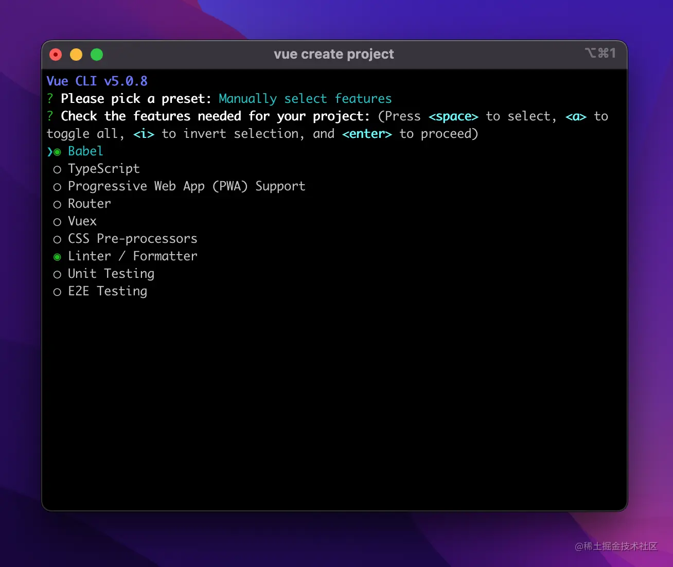 这时候 inquirer 出现了,它是一个命令行交互工具,可以做很多事情,比如各种 cli 的一些问题及选择配置的方式,如 VueCli 的创建的这种多选、单选它都可以做到。