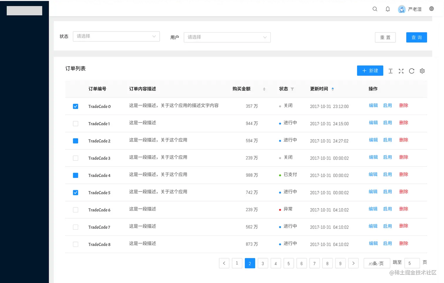 在常见中后台中表格页出现4个以上的按钮,如下图,有新增、删除、编辑、查询。从业务中来,又从业务中走出去。