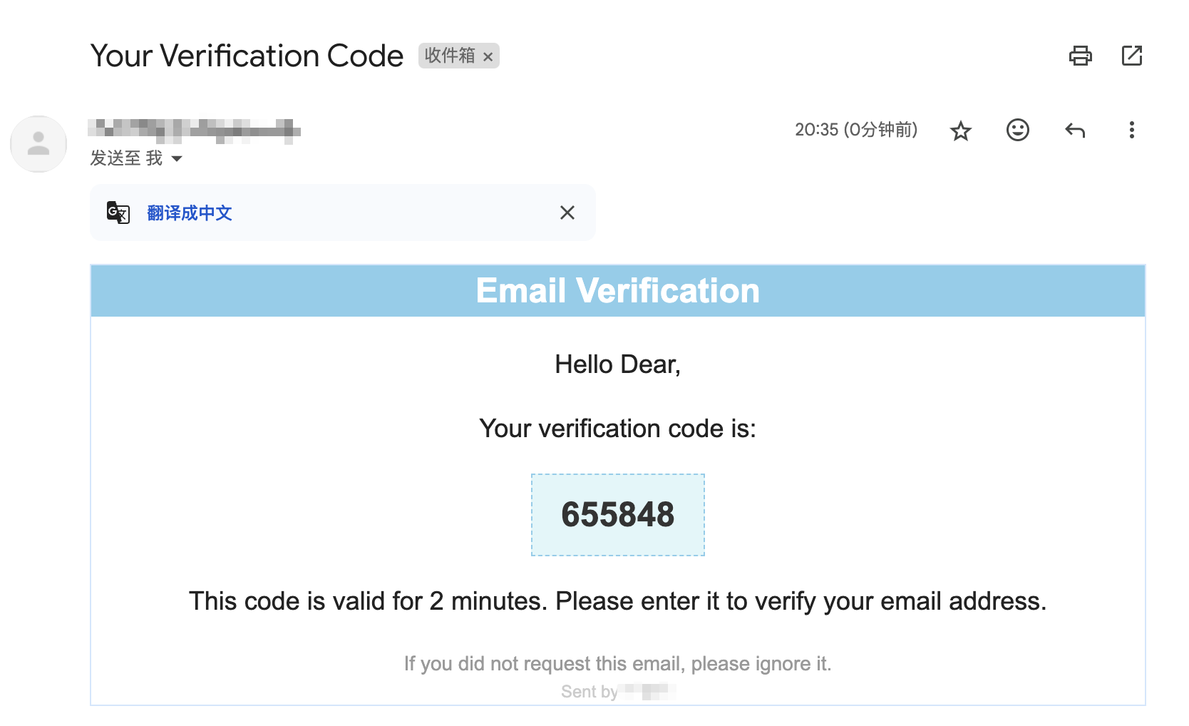 如果验证码存储成功,发送包含验证码的电子邮件。