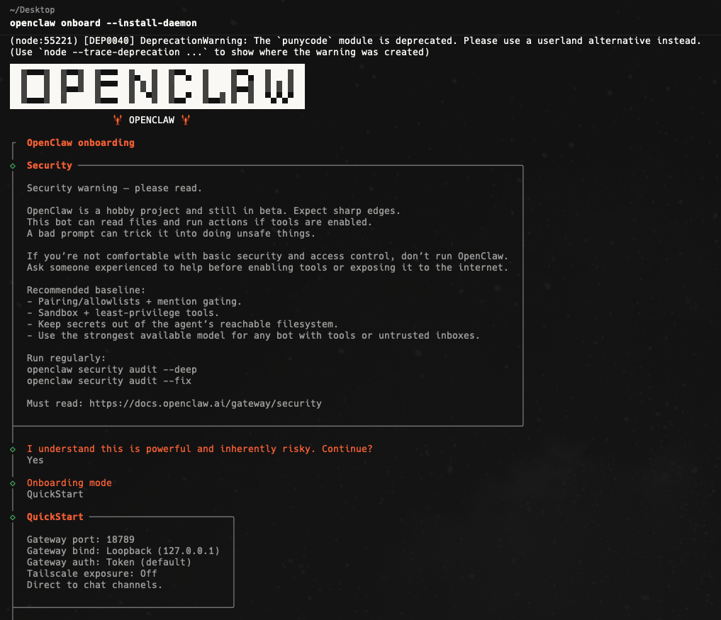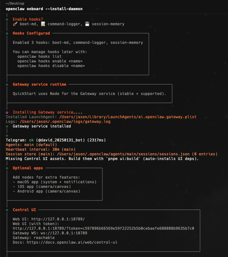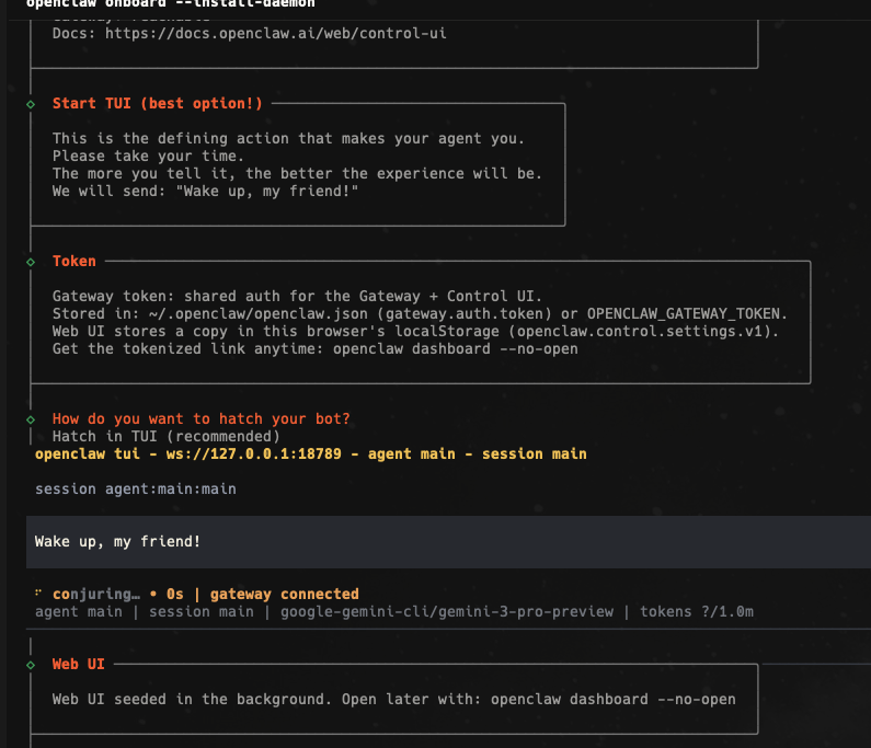 openclaw onboard --install-daemon启动界面: