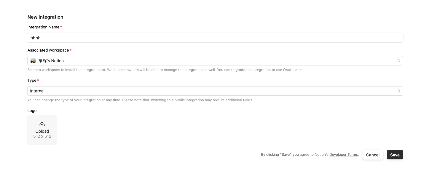 如果你需要接入 Notion 让 Bot 帮你写文档,你需要先去创建一个 Integration: